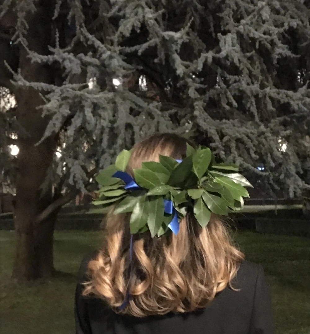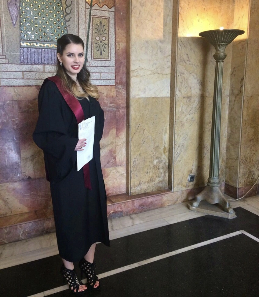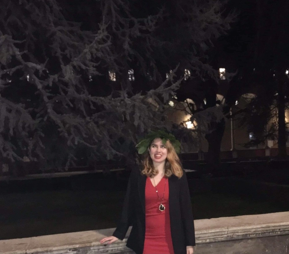 - Αναμνηστική φωτογραφία μετά την τελετή απονομής του μεταπτυχιακού της διπλώματος στη Διαχείριση Πολιτιστικών Οργανισμών (Arts & Cultural Management) από το Università Cattolica del Sacro Cuore του Μιλάνου
