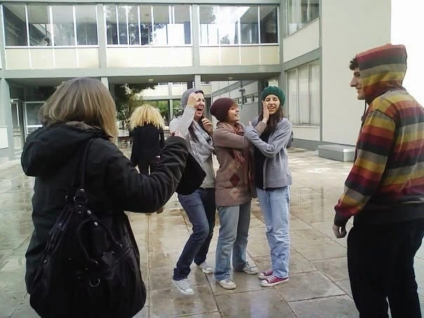 - Η Σταυρούλα με φίλες και συμμαθητές της στους διαδρόμους και στο προαύλιο του Σχολείου